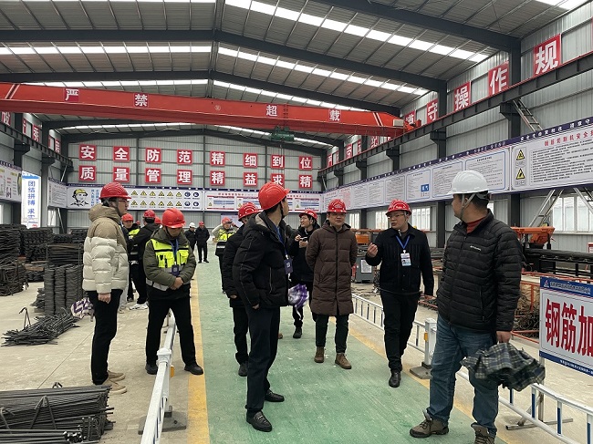 黃曉東一行聽(tīng)取了項(xiàng)目負(fù)責(zé)人關(guān)于項(xiàng)目概況、項(xiàng)目駐地及場(chǎng)站建設(shè)等方案的詳細(xì)介紹,并通過(guò)項(xiàng)目沙盤(pán)模型,了解項(xiàng)目整體情況。黃曉東一行實(shí)地參觀了項(xiàng)目駐地辦公區(qū)、試驗(yàn)室、鋼筋加工廠、拌合站及預(yù)制場(chǎng)等現(xiàn)場(chǎng),對(duì)建工建投集團(tuán)堅(jiān)持高質(zhì)量建設(shè)標(biāo)準(zhǔn)化項(xiàng)目表示高度贊賞,對(duì)項(xiàng)目管理團(tuán)隊(duì)展現(xiàn)出的富有朝氣的精神風(fēng)貌表示肯定。